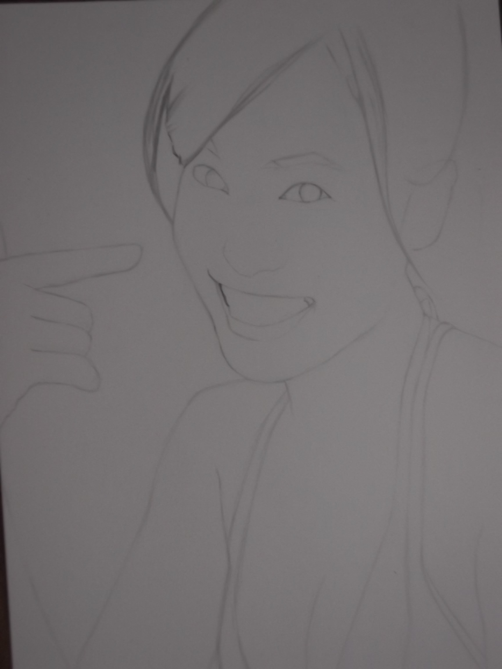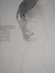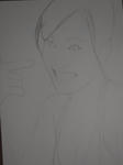 ここまで描いてみて、ようやく「イケる!」と思い始めた!…もっとも、この写真を撮る前、一度左目を細かく描き込んでみたら…下描きの段階で左目の位置を上に取りすぎていた事に気付き…描き込んだ左目を一度全部消して、2時間かけて描き直しました!