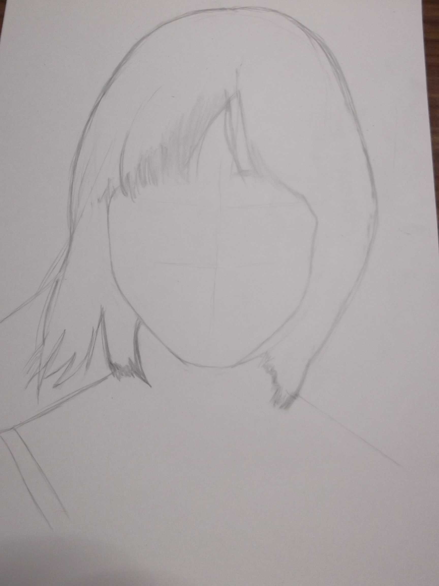 いきなりざっと輪郭や髪型を描いちゃうのが、僕の描き方の癖。まあ、描いている内にドンドンとズレが生じてくるので、その辺は修正しながら描き進めて行くんだけど。