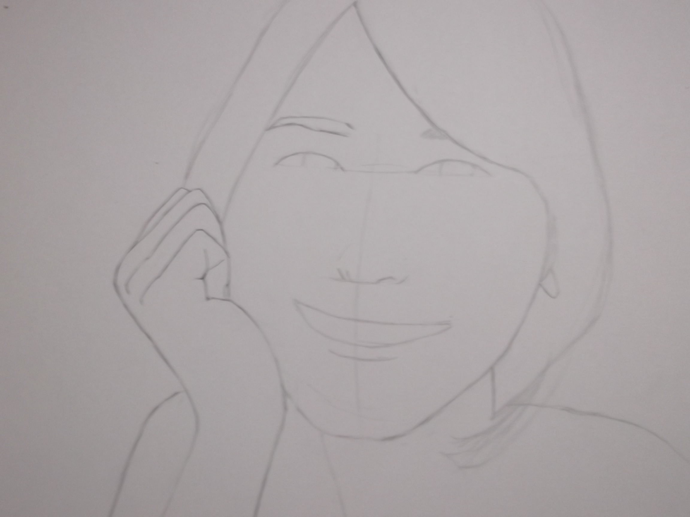 今回の絵は、指の関節の位置を目安にして顔を描いて行くつもりなので、まず手が決まらないと何も描けない!そして思ったより良く描けたんじゃないか!!!!?