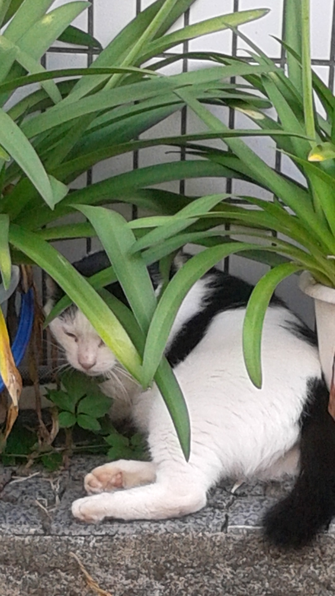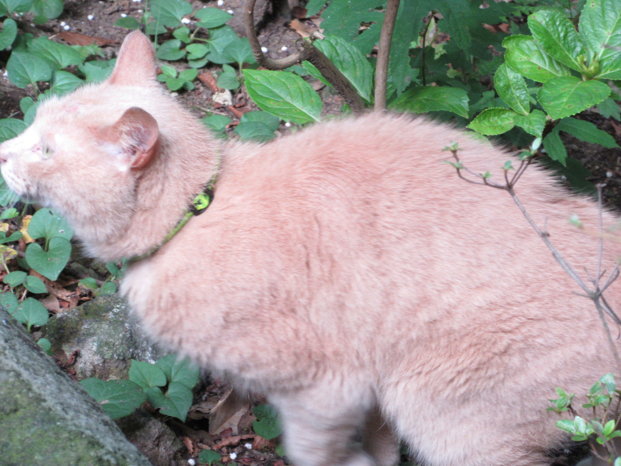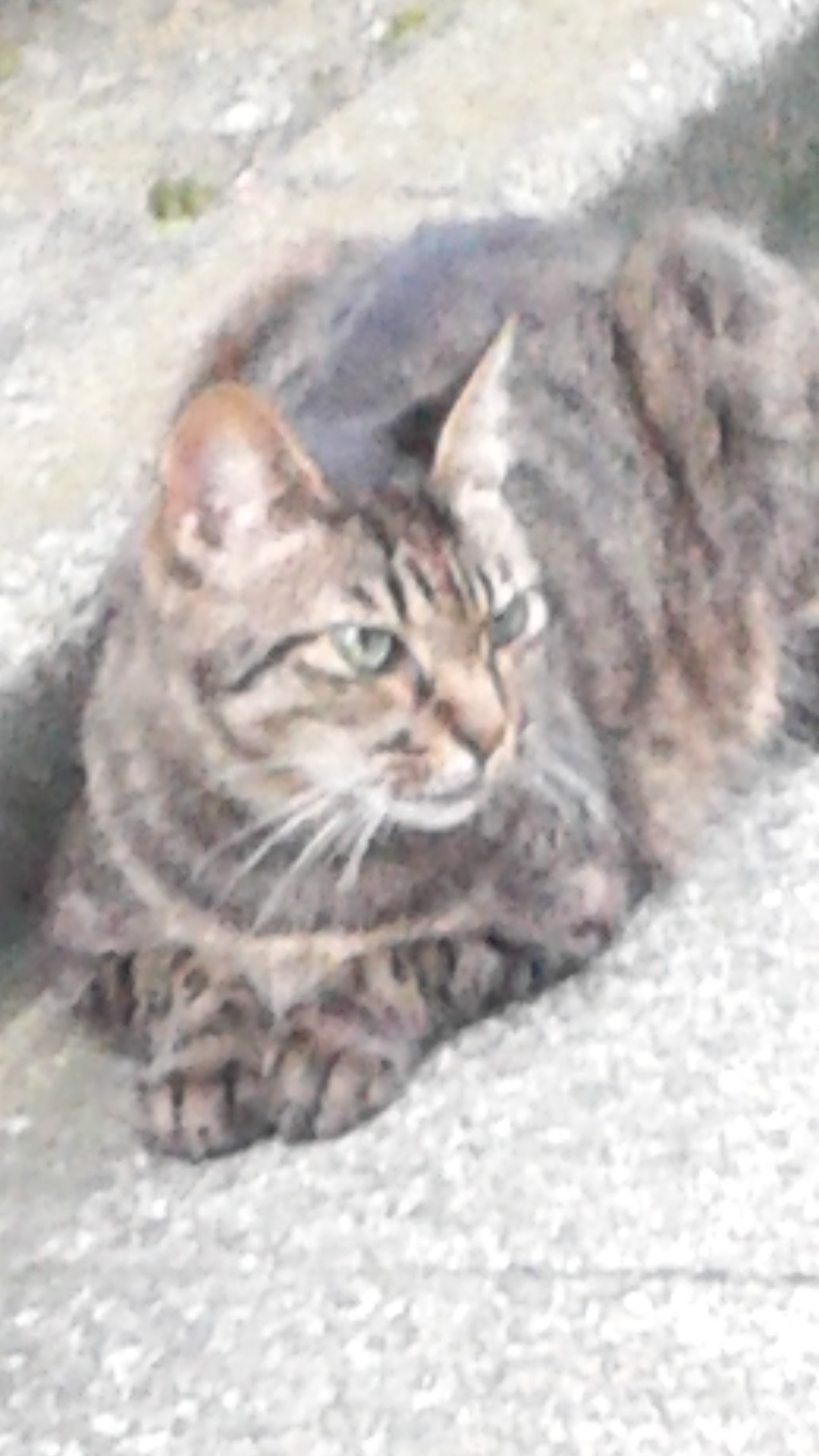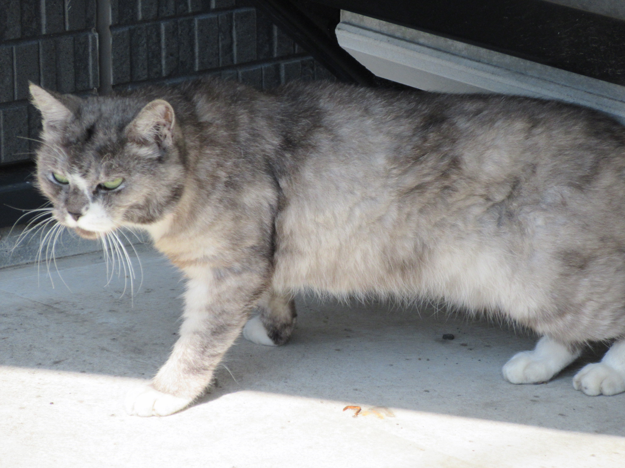 僕が通りかかった時、階段の下の日陰でこの人が「くた~」っと倒れていたけど、写真を撮ろうとカメラを出していたら起き上がって「にゃー」って鳴いて…ん?「鳴いて」?… あ、猫だった。