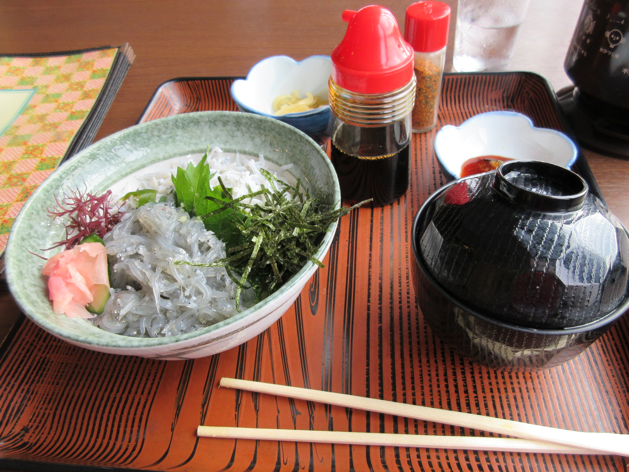 午後3時半。まだ昼食をとってなかったので、ここらで何か食べようかなと思っていたら、ちょうど通りかかった食事処の女将さんの「生しらす、まだありますよ~!」という声に引かれて入店。
