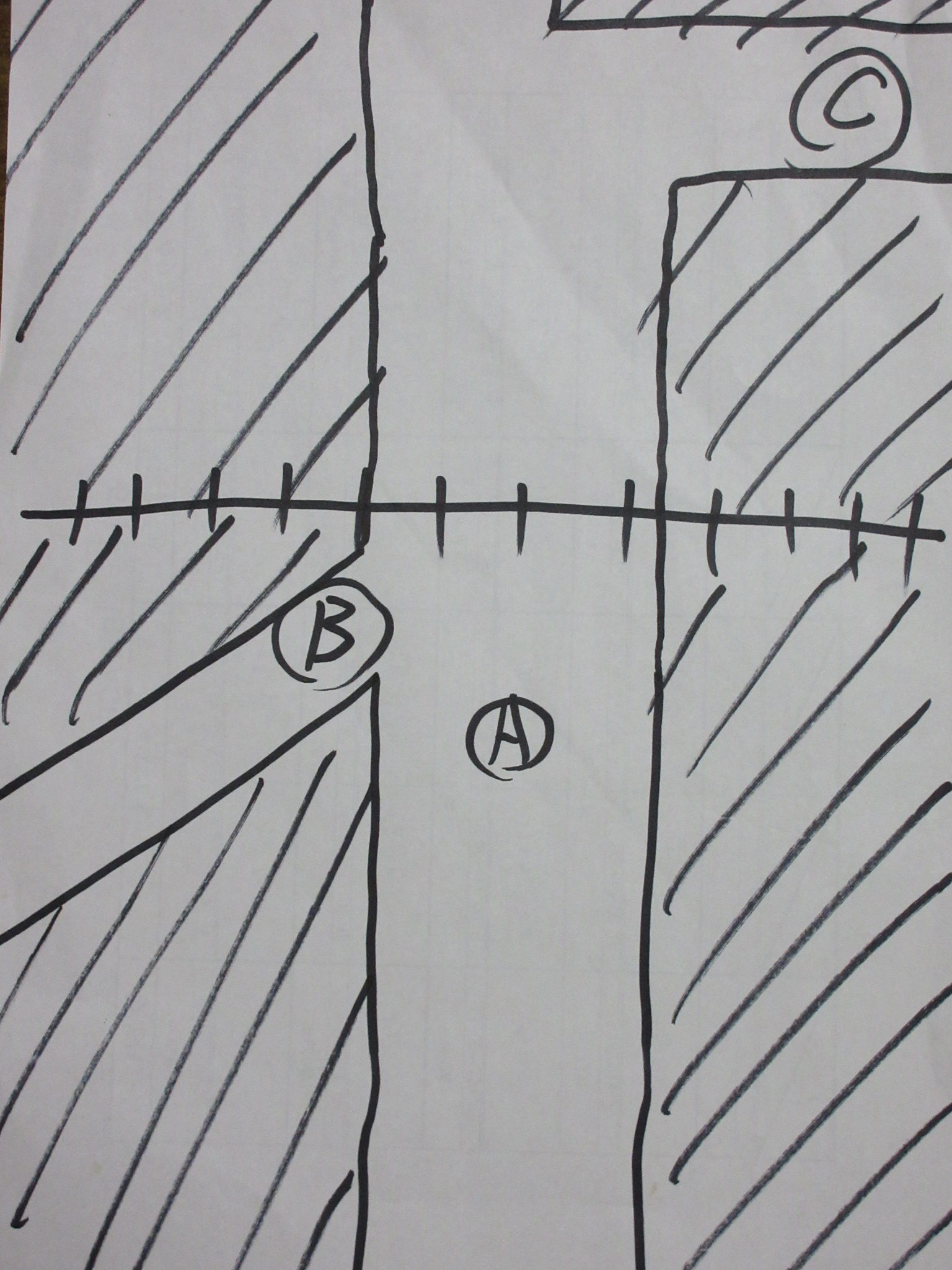 僕はAの道から来て踏切を渡り、C方向へ行こうとしていたんだけど…ご覧のように、踏み切りもある上に道も入り組んでいるし、おまけに交通量も多くて、地元でも屈指の渋滞ポイントでして…