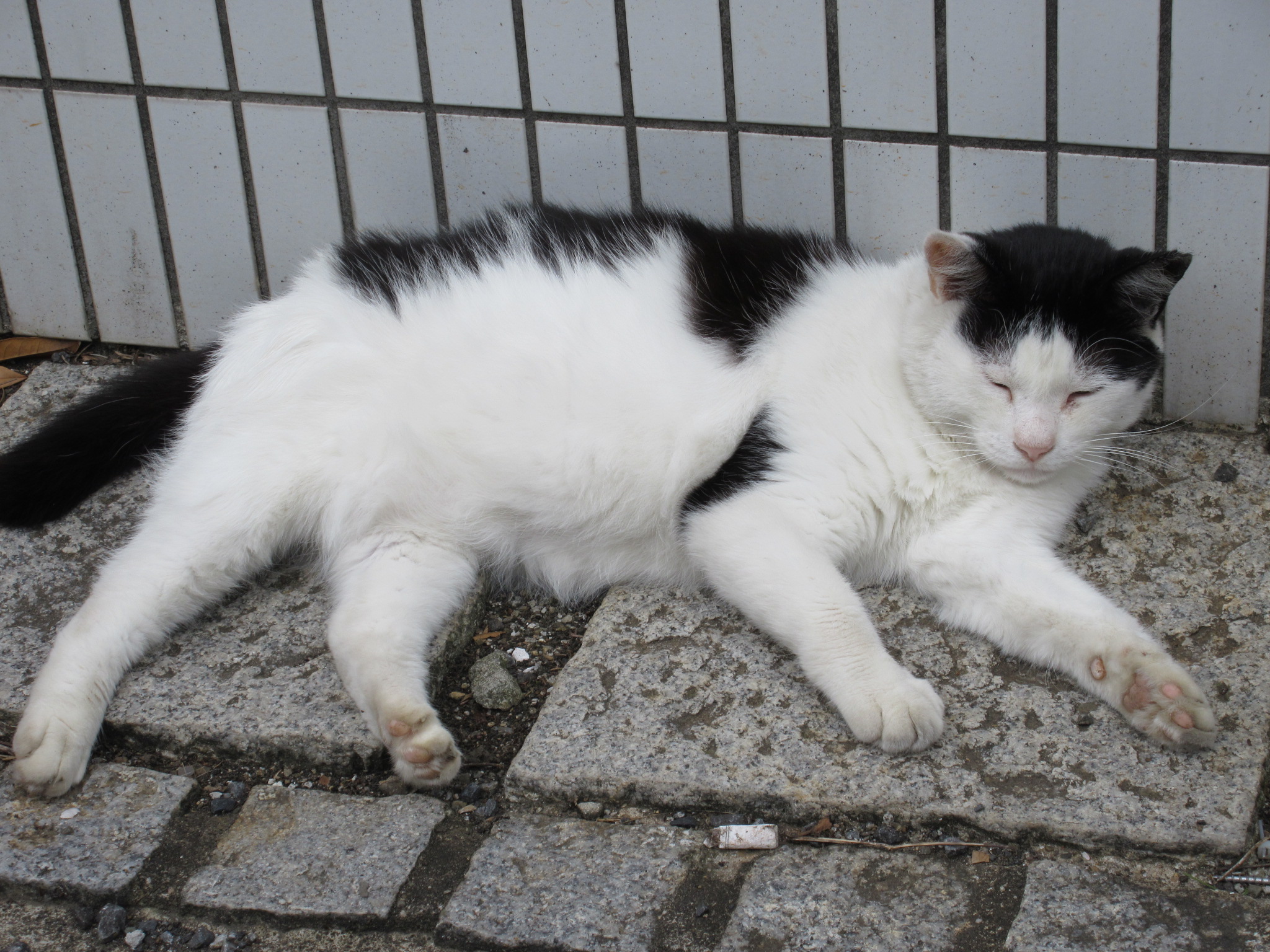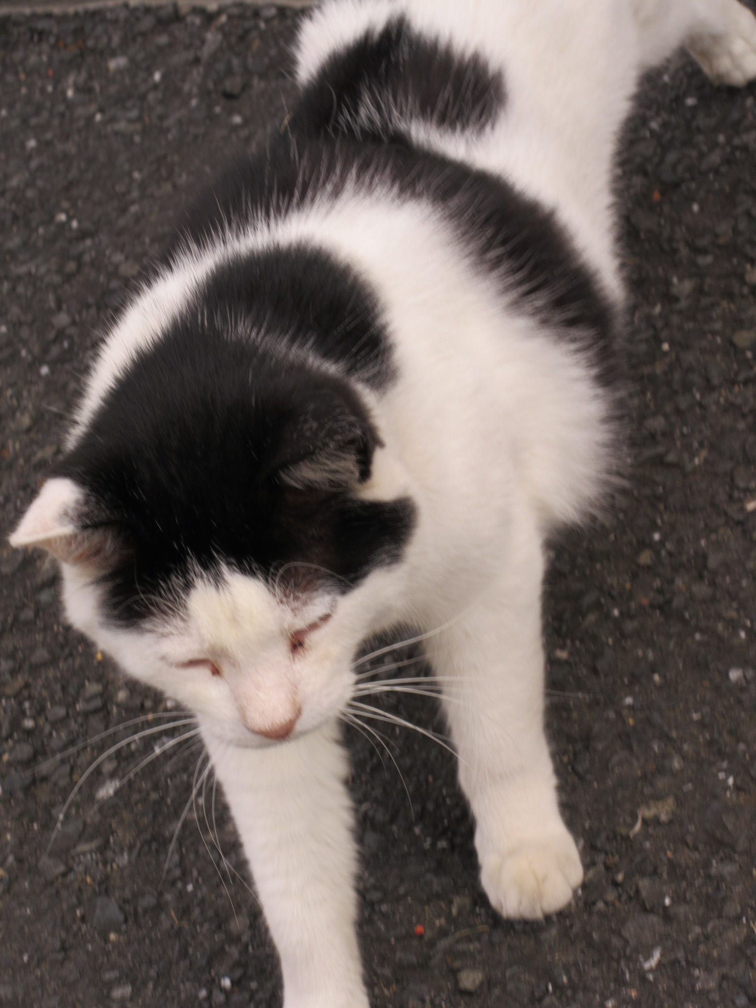 この猫、高麗神社境内をウロウロしている滅茶苦茶人懐っこい子なんだけど、どうやら境内をウロついて遊んでくれそうな人間を探すより、参道で待っていれば人間の方からやって来る事に気付いたようで、待ち伏せしながらやって来る人間を物色していた!!!!!!!!!!