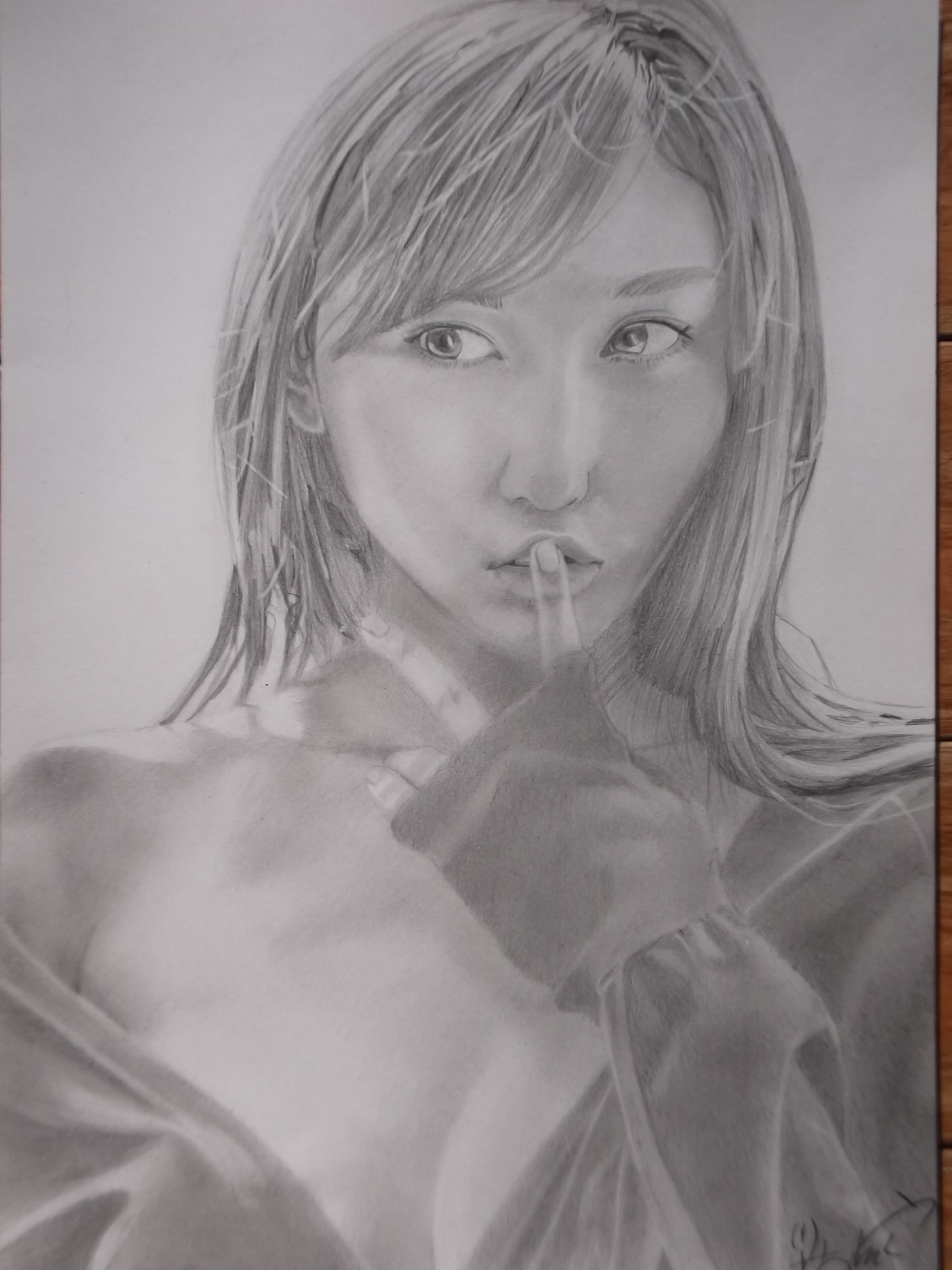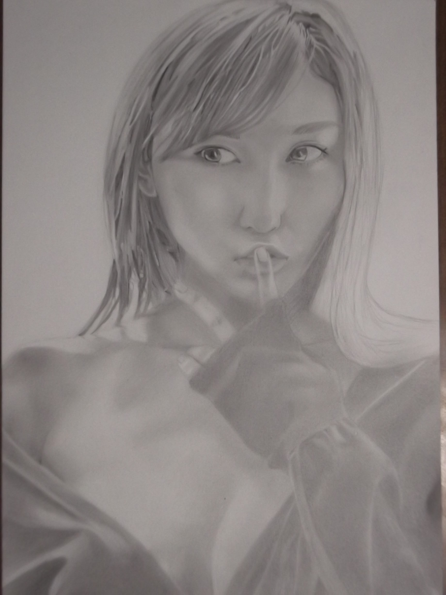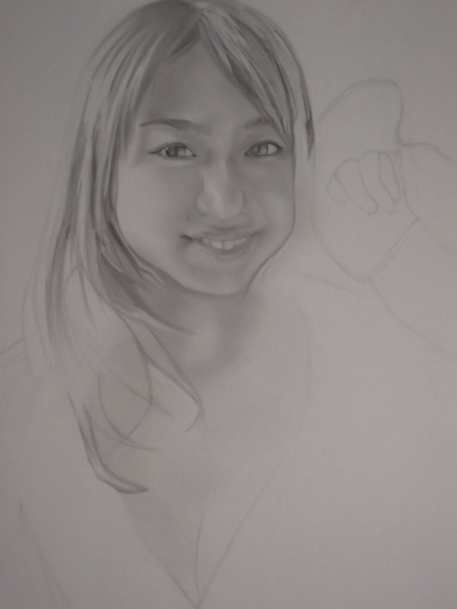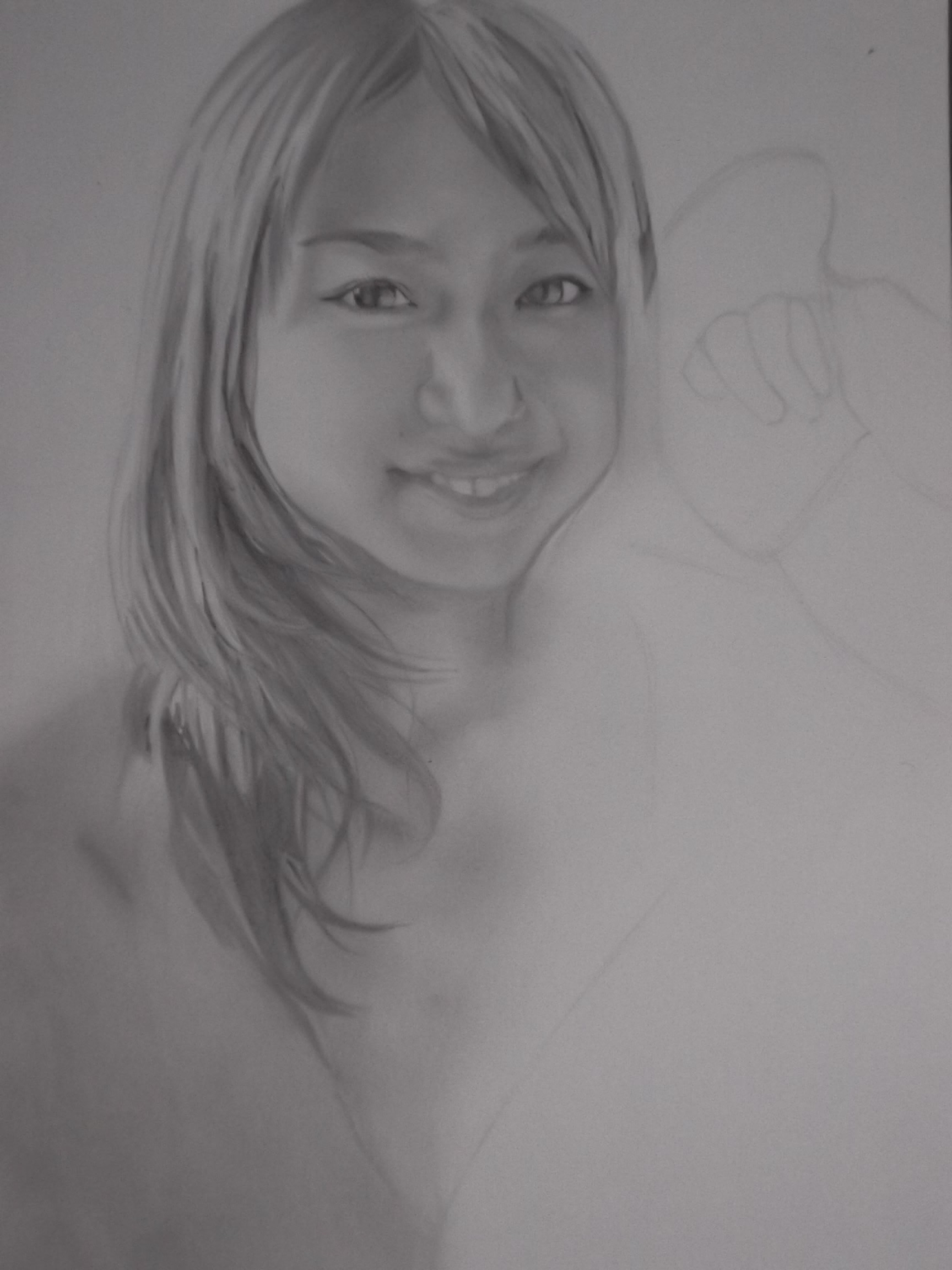 そして似顔絵は今大人気のグラビアアイドルの、ちょっぴりHな写真を描いてるんだけど…肌の柔らかさと服の質感を出そうとこだわっていたら、こっちも遅々として進まない…