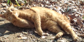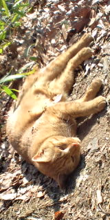 星人、僕の姿を見つけるや、「ニャーニャー」鳴きながらゴロンゴロンと左右に転がり、お腹を晒した格好でピタっと止まった!!!!!!!!