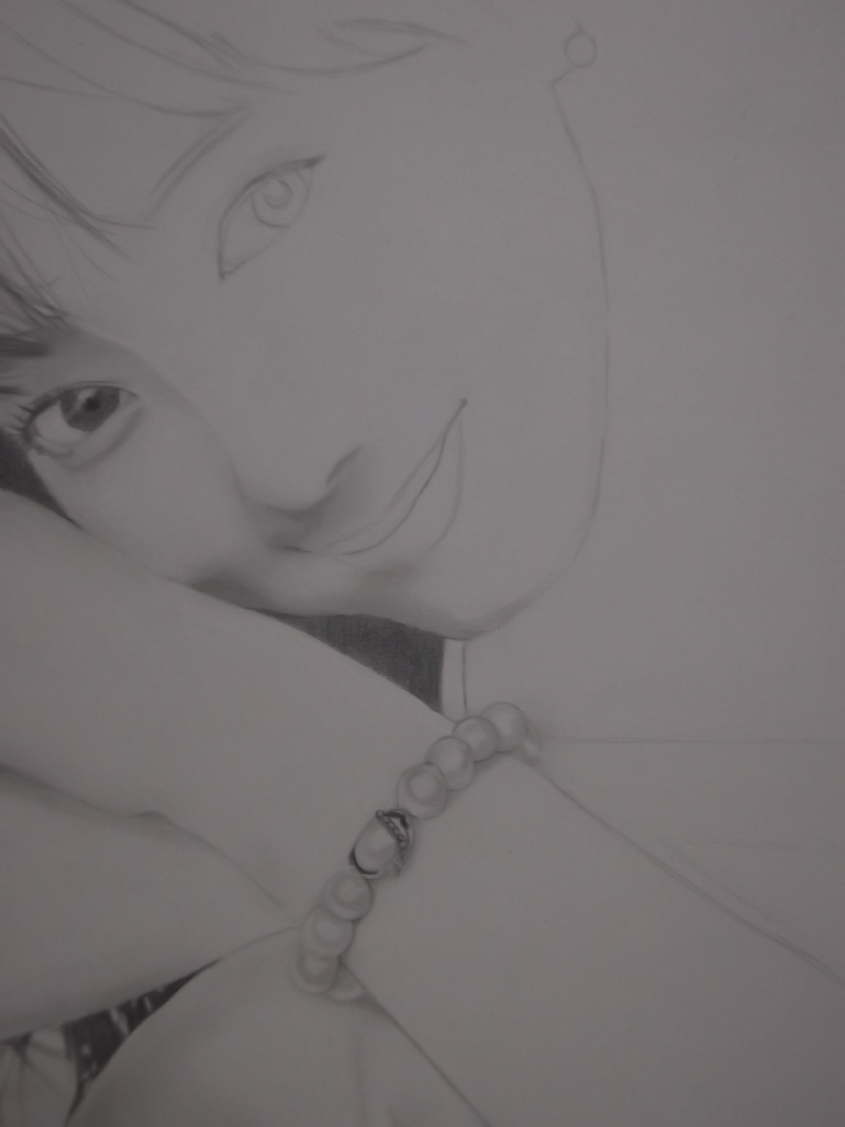 僕は斜め横から見た顔を描くのが苦手な事に気付いたので、それを克服するために敢えてこの角度から見た写真を選んだ!