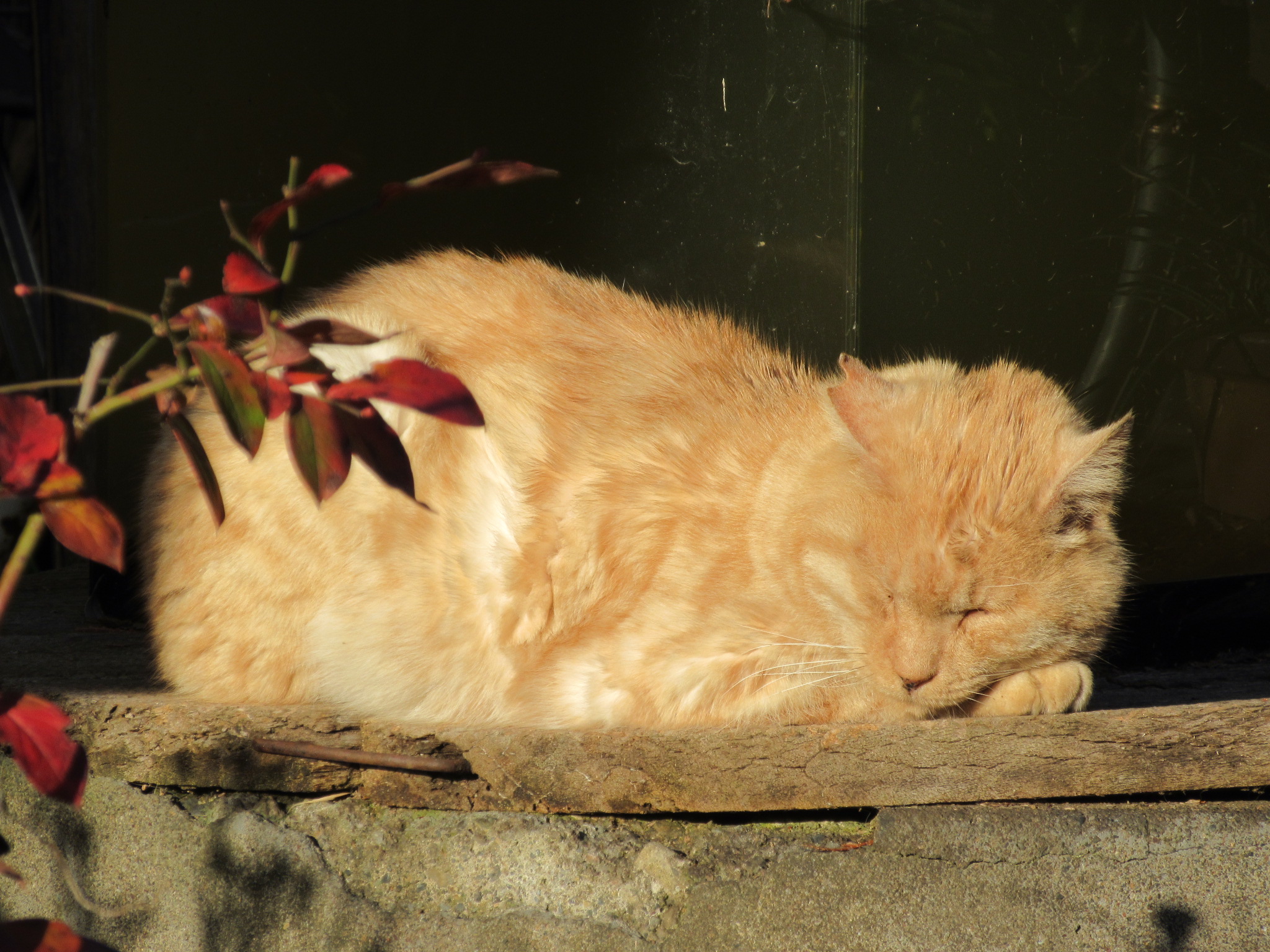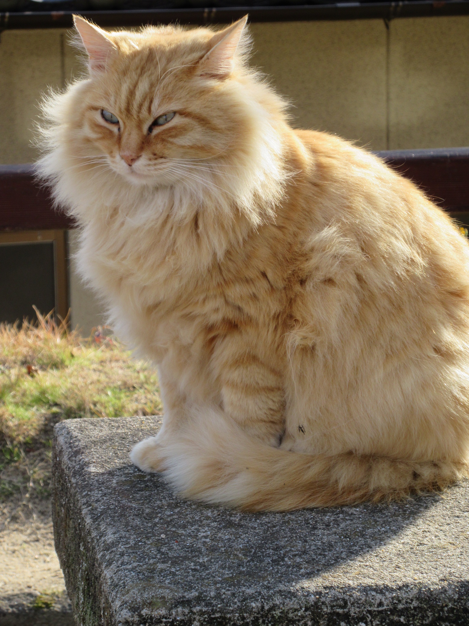 その途中、何度も何度も「はぁ~…」と、まるで200mを全力で走った後の人の呼吸レベルで溜め息を吐いていたら…先日書いた、3人のお年寄りをメロメロにしていたキジトラの猫(♀)が、ある民家の前で座っているのを発見。