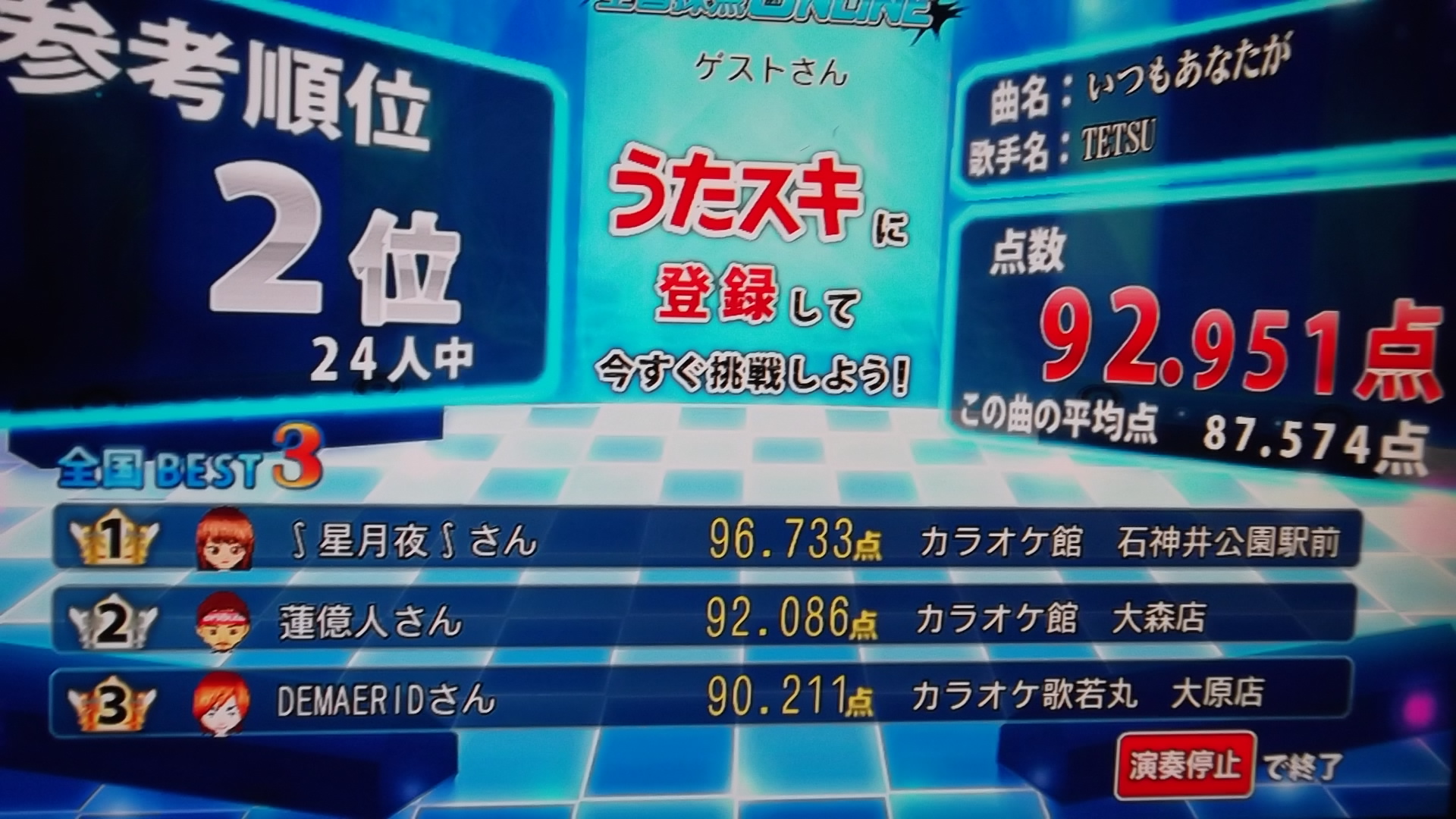 いつものように発声練習を兼ねたカラオケに行き、ついでに全国ランキングに参加してみたら!