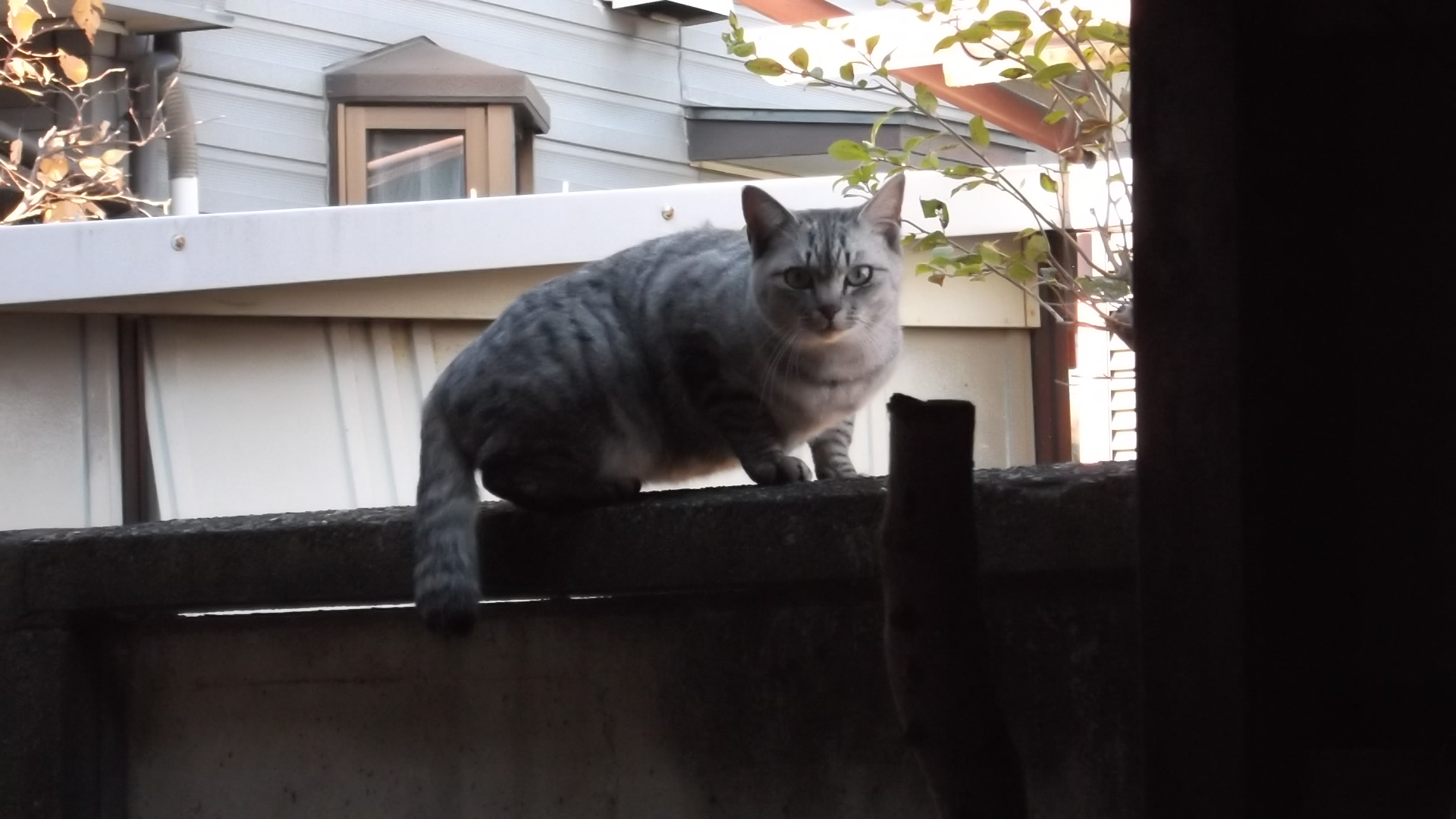 シッポをピンと立たせながらお隣との塀の上を車庫の方へ向かってのっしのっしと歩いて来る茶トラの姿がッッッ!