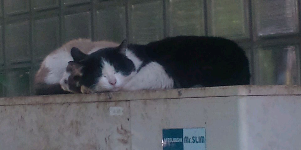 …と、脳が誰もどう突っこみようもない事を考えるほどの熱暴走を起こしながら、地下鉄を降りて大門のスタジオへ向かう途中、例のビルに住み着いてエアコンの室外機の前でいつも昼寝している猫が、今日も風に当たりながらスヤスヤしているのを見て、ニヤニヤと涎を垂らす…