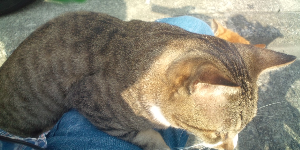 そいつはまるで「おい!遊ばないとどかないぞ!」と言う感じにニャーニャー鳴きながら、全体重を僕のももにかけて来た!その姿はまるで”子泣きじじい”のようだった!!!!!!!